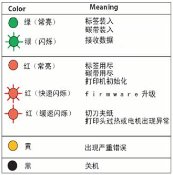 條碼打印機指示燈說明