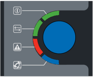 藍色的就緒 LED 指示燈顯示打印機的運行狀態。簡言之,在打印機就緒時該LED 指示燈亮。如果就緒指示燈熄滅或閃爍,則表明打印機未完全就緒。有若干狀況會導致此現象。