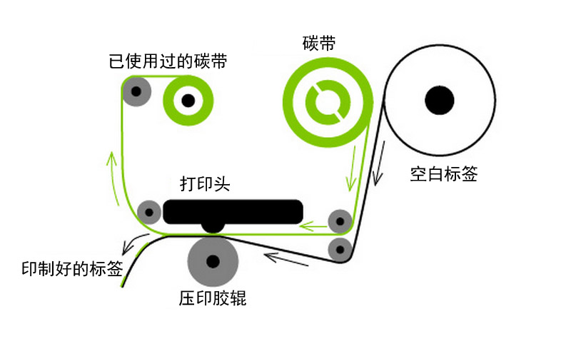 熱轉印打印方式下,條碼打印機工作原理是,使用熱轉印碳帶作為介質打印到標簽承印介質上。電腦控制條碼打印機的打印頭發熱,熱轉印碳帶的油墨涂層在打印頭發熱的熱力作用及打印頭壓力作用下,熔化并轉印到標簽承印介質上,顯示出要打印的圖形及文字。使用熱轉印方式打印的標簽,根據標簽的材質以及使用碳帶的材質不同可以保存更長的時間,如使用樹脂基碳帶打印的PET耐久性標簽通常可以保存3-5年,甚至更長的時間。