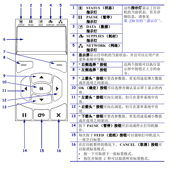 斑馬ZT510標(biāo)簽打印機(jī)的標(biāo)準(zhǔn)控制面板