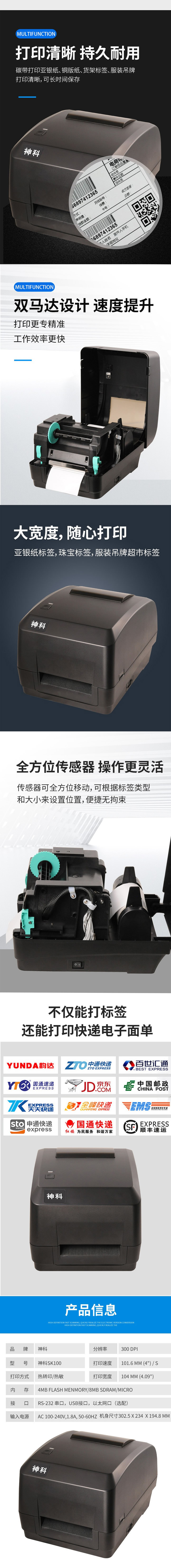 訂購:神科SK100條碼打印機