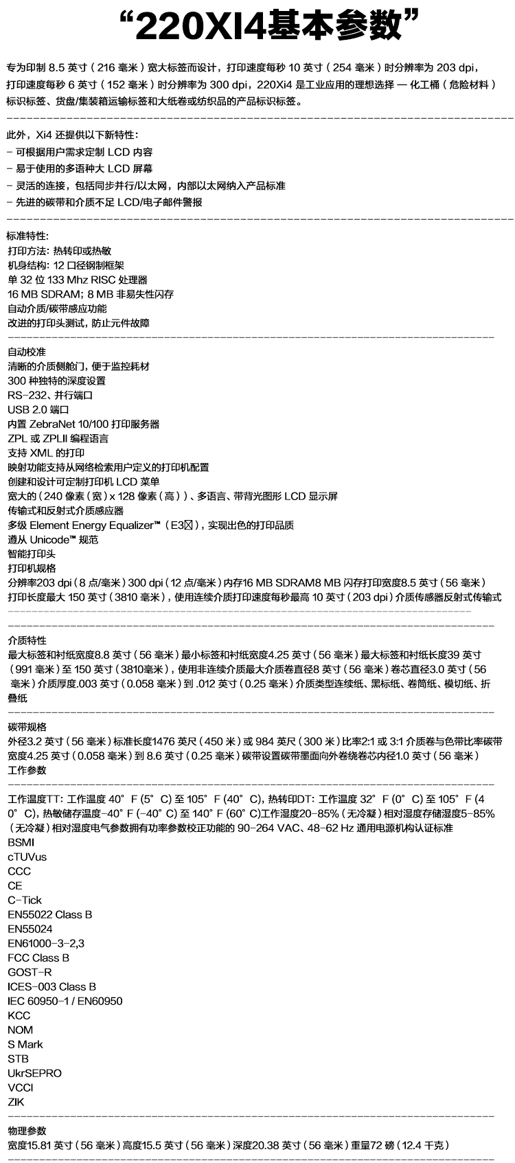 - 產品簡介:斑馬(ZEBRA) 220Xi4工業型條碼打印機為一種寬幅條碼打印機,斑馬(ZEBRA) 220Xi4工業型條碼打印機可以高速地在8.5英尺寬的標簽上每秒內可打印10英尺長,更大打印寬度達到216mm,斑馬(ZEBRA) 220Xi4特別適合打印醫用標簽,自動化工業標簽及集裝箱航運等特殊規格標簽。