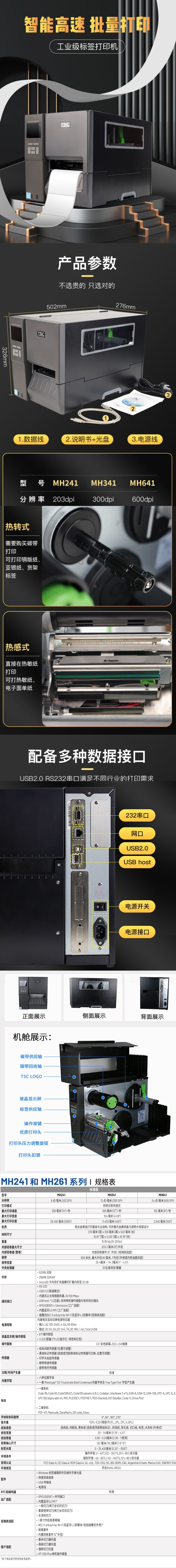 訂購:TSC MH641 標簽條碼不干膠打印機高清600dpi圖形工業高性能 MH641【高清600dpi】新款
