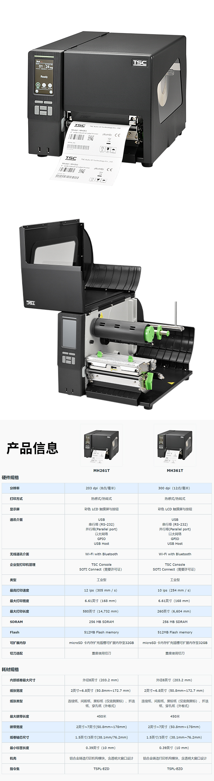 訂購:TSC MH261T標簽條碼不干膠打印機高清203dpi圖形工業高性能