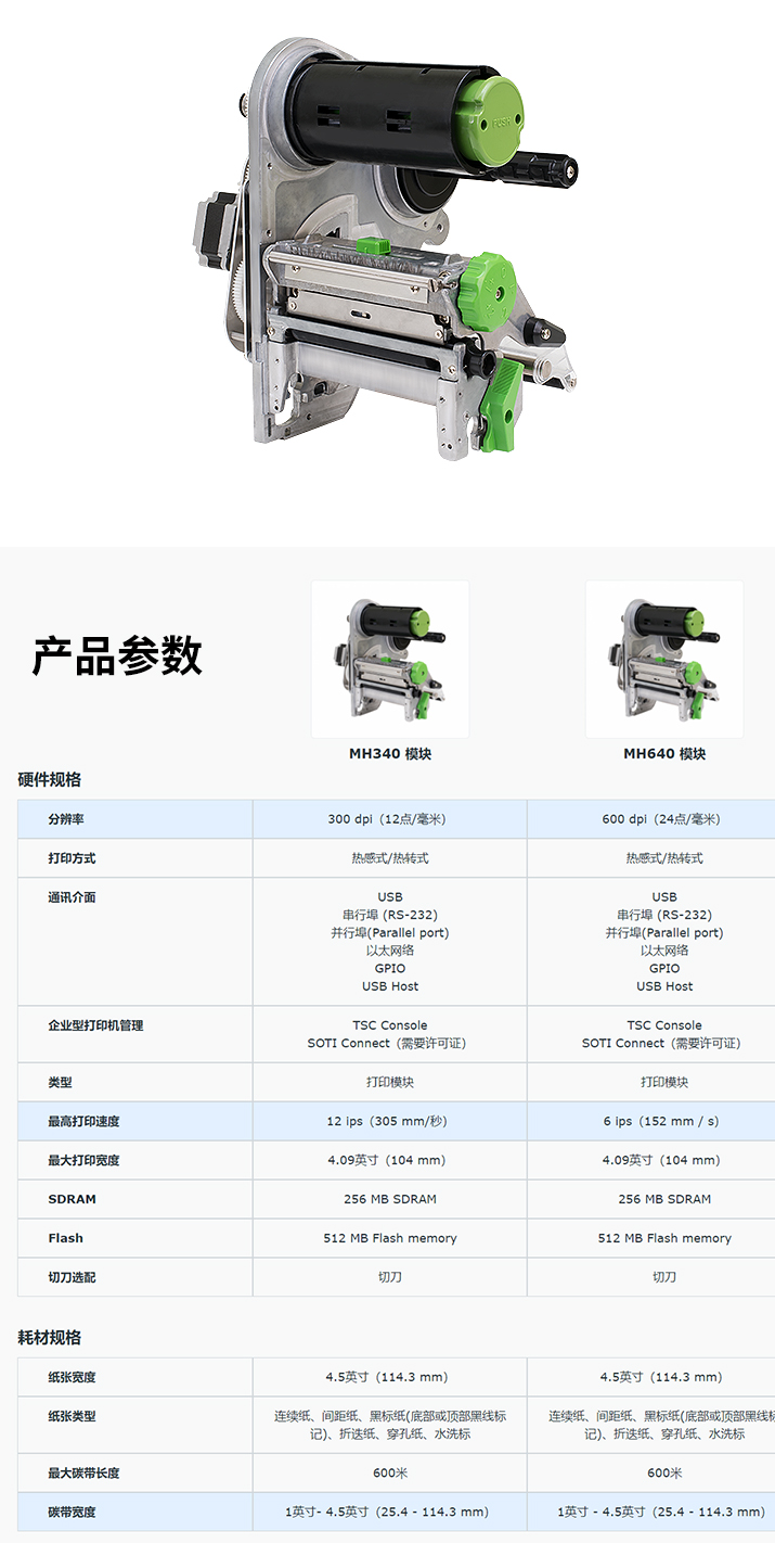 訂購(gòu):TSC-MH340/MH640打印模塊