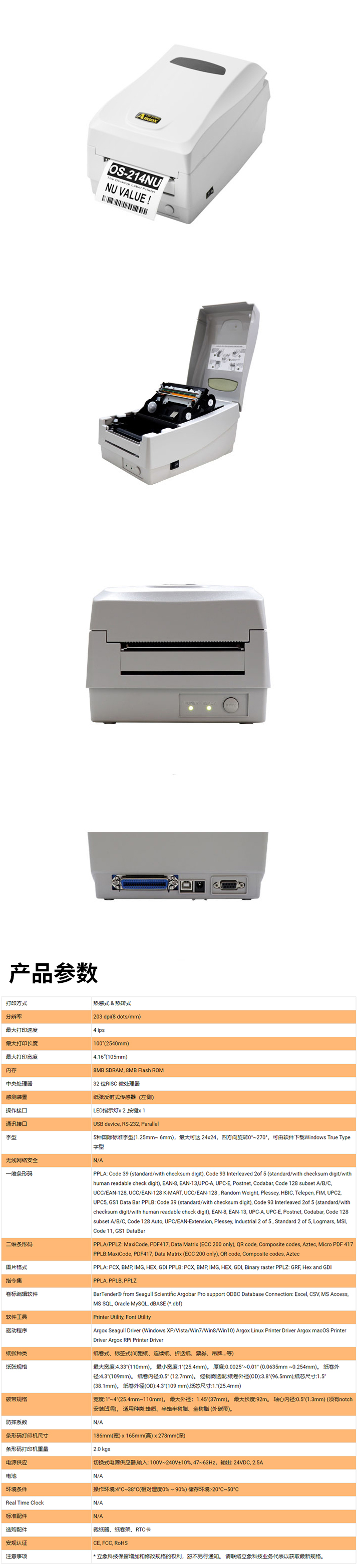 訂購(gòu):立象(Argox)OS-214NU (203DPI)不干膠標(biāo)簽條碼 熱敏/熱轉(zhuǎn)印打印