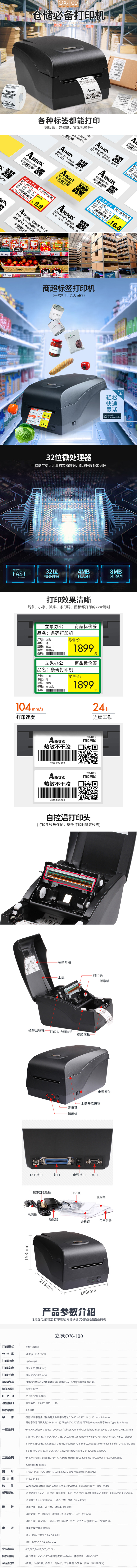- 產品簡介:OX-100條形碼打印機是Argox精益求精的嶄新產品,除了保留原暢銷機種OS-214系列的所有特點外,在外觀的設計上更是本產品的最新亮點!流線型的外觀,沉穩內斂的尊貴黑,更是您在各類應用的最佳選擇,不管是在商場,政府機關,辦公室等都未原本的空間帶來更高品味的視覺享受!
