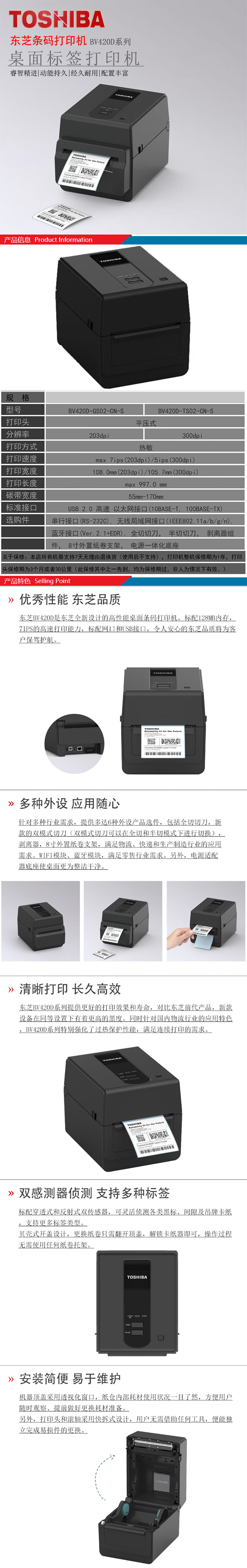 訂購:東芝(TOSHIBA)桌面打印機(jī)BV420D-GS02-CN-S(203DPI)/BV420D-TS02-CN-S(300DPI)/僅熱敏模式