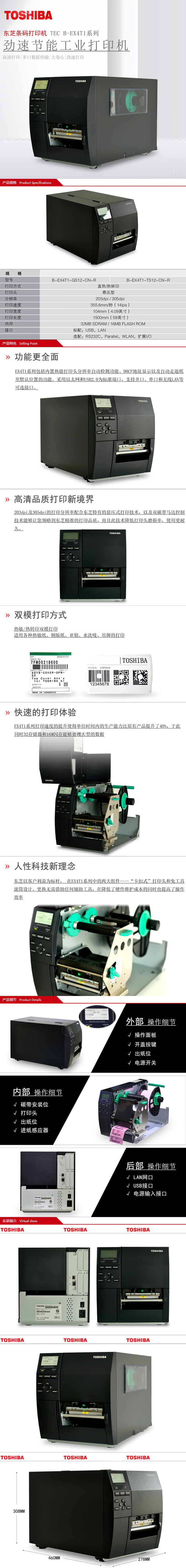 訂購:東芝 TOSHIBA B-EX4T1系列工業(yè)不干膠標簽快遞電子面單二維條碼打印機