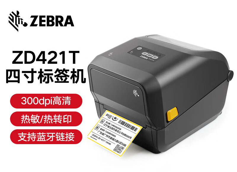 - ZEBRA 斑馬GT800升級(jí)款ZD421T條碼標(biāo)簽打印機(jī)不干膠固定資產(chǎn)標(biāo)簽機(jī)熱敏快遞電子面單 ZD421T 300dpi(USB+藍(lán)牙)
